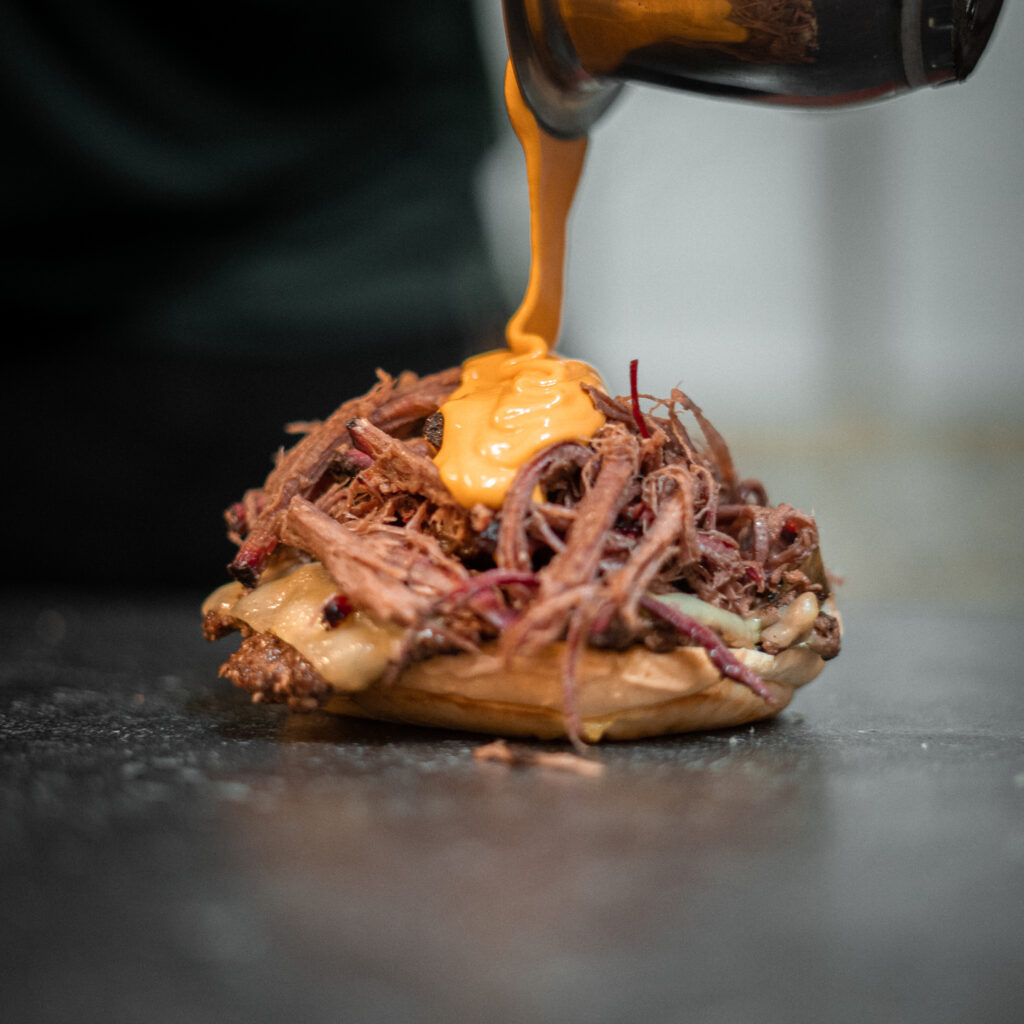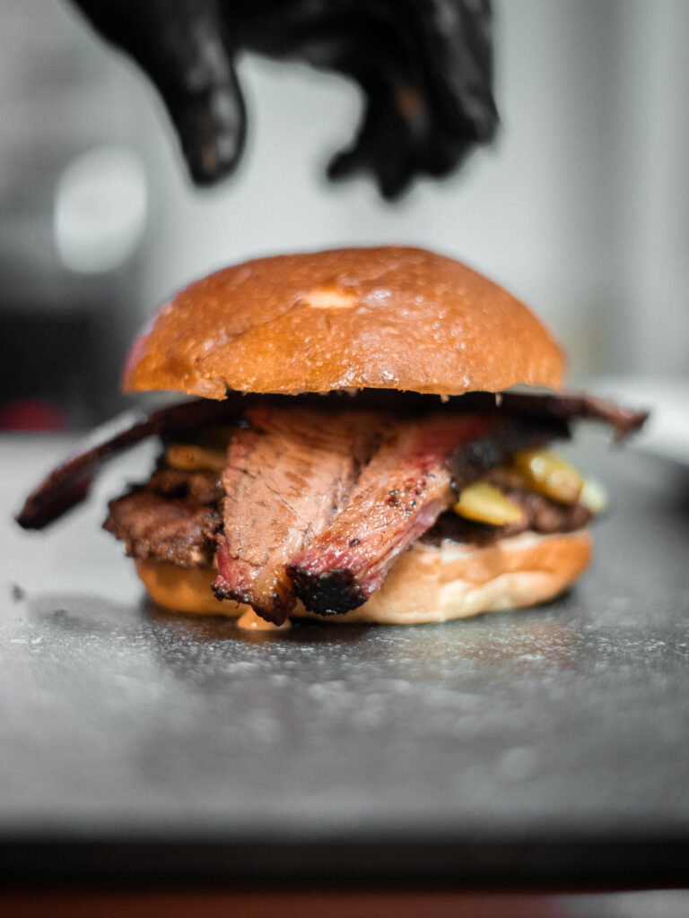 2x angus burger + cheese, smoked angus brisket, slices, smash sauce, caramelised onions, pickles